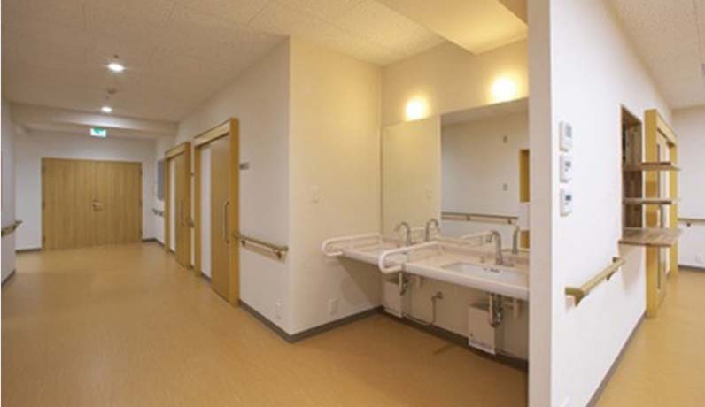 当施設は全施設完全バリアフリーの構造になっておりますので、車椅子はもちろんのこと日常の些細な段差での転倒防止対策も行っております。防災対策では、大雨による浸水、倒壊や台風、地震に対しても、当施設は高台に位置し、鉄骨造りの強固な建物ですので、被害は最小限に止めることができます。無論防災訓練やマニュアル、人的設備も万全です。