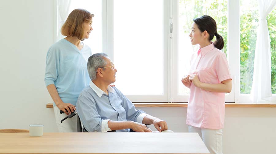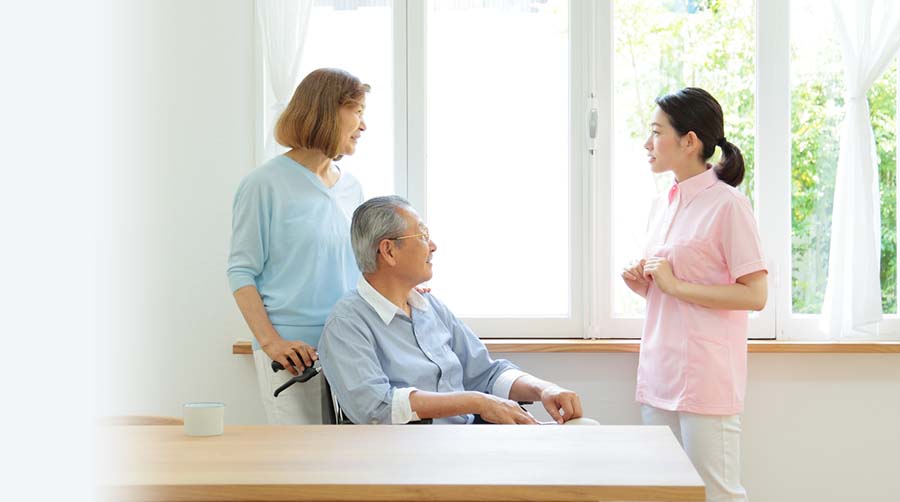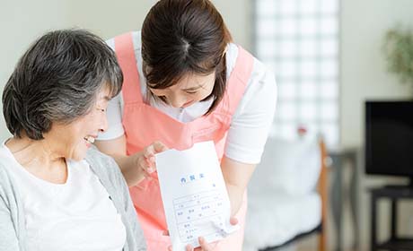 訪問介護員(ホームヘルパー)がご自宅に訪問し、介護や日常生活上のお世話を行うサービスです。食事や排せつなどの介助を行う「身体介護」、調理や掃除などを行う「生活援助」をはじめ、ご自宅での生活に関するサービスや日常生活でのアドバイスをいたします。
