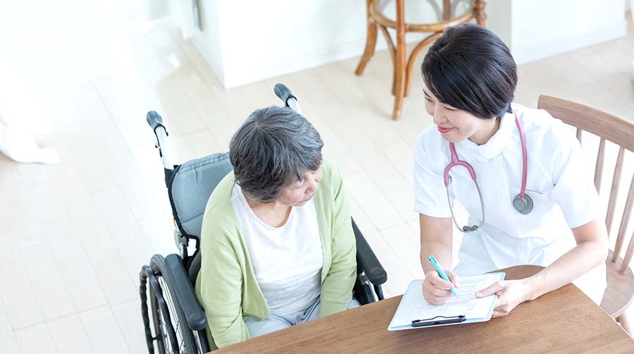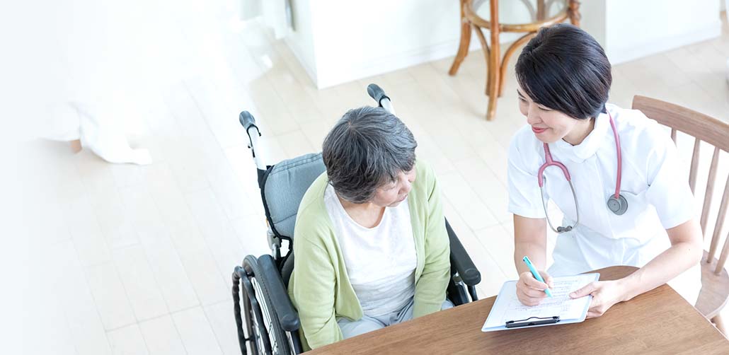 要介護認定を申請すると、市町村から間取り調査を行う訪問調査員がサービスご利用のお宅を訪問し、介護や支援がどの程度必要なのかを調査します。また、主治医に対して「主治医意見書」の作成依頼を行います。