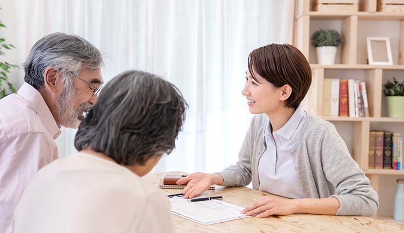 介護が必要となり、介護保険制度を利用するには、要介護認定に基づいたサービス計画書作成が必要です。そのためのご相談やケアプランの作成を行うのが、居宅介護支援サービスです。お客様のご希望や身体状況などに応じたサービスを選択していただき、効率良くご利用いただくために、まずはケアマネージャーがご本人やそのご家族からの相談をうかがいます。その後、ケアマネージャーが十分に希望を反映したプランをご提案いたします。